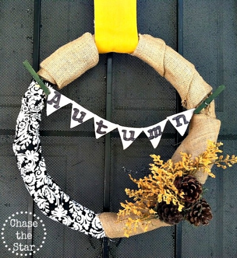 I love the color combination on this fabric scrap wreath! Have some fabric scraps? Make yourself an autumn wreath! Tutorial by Chase The Star