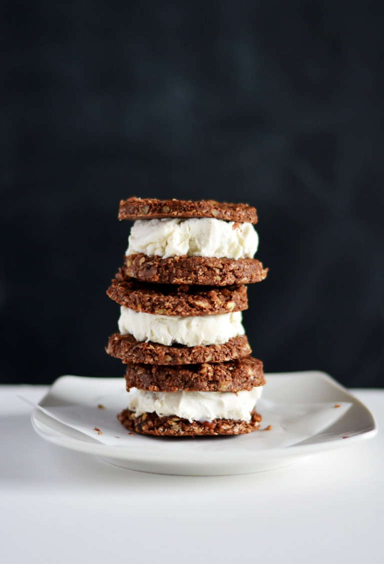 If you wanted to make them a little lighter, there is a weight watcher recipe where you use graham crackers and cool whip to make ice cream sandwiches. You could use the cool whip here also!
