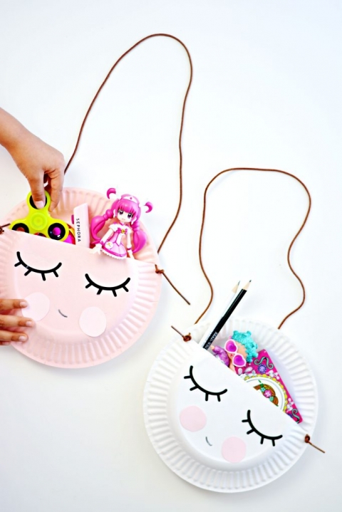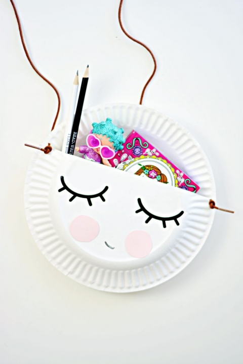 My daughter was so happy with her quick paper plate purse, she filled them with her favorite things!