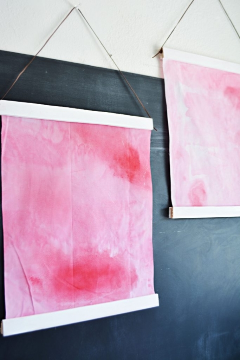 My daughter had a blast helping me with this project, she loved how the water moved on the fabric absorbing the watercolors. Remember our watercolor tablecloth and backdrop? Well we used almost the same technique.